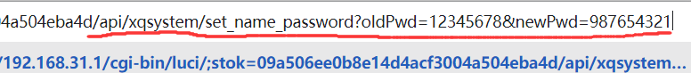 我们将URL中 /web/home#router 修改为/api/xqsystem/set_name_password?oldPwd=前面设置的管理员密码&newPwd=新的管理员密码